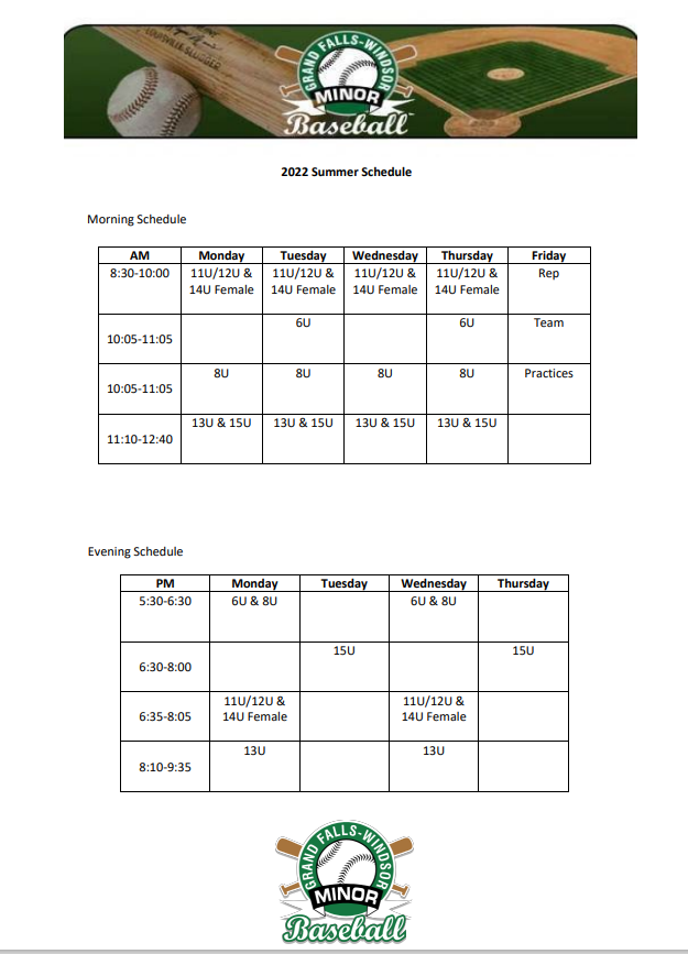 Check out the schedule below for all divisions. Summer baseball starts Monday, June 27th!